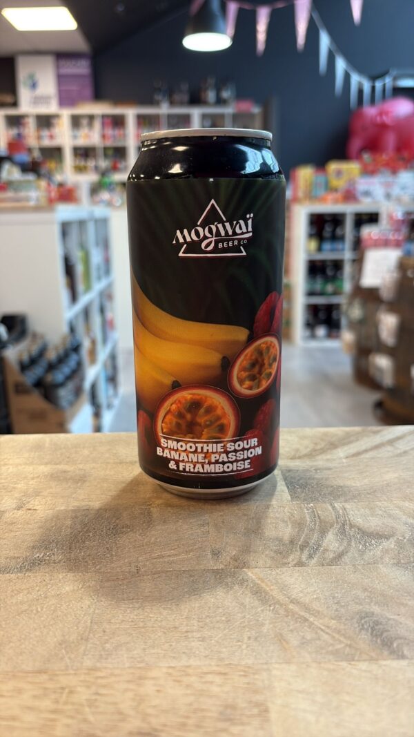 Smoothie sour with banana, passion fruit and raspberry.